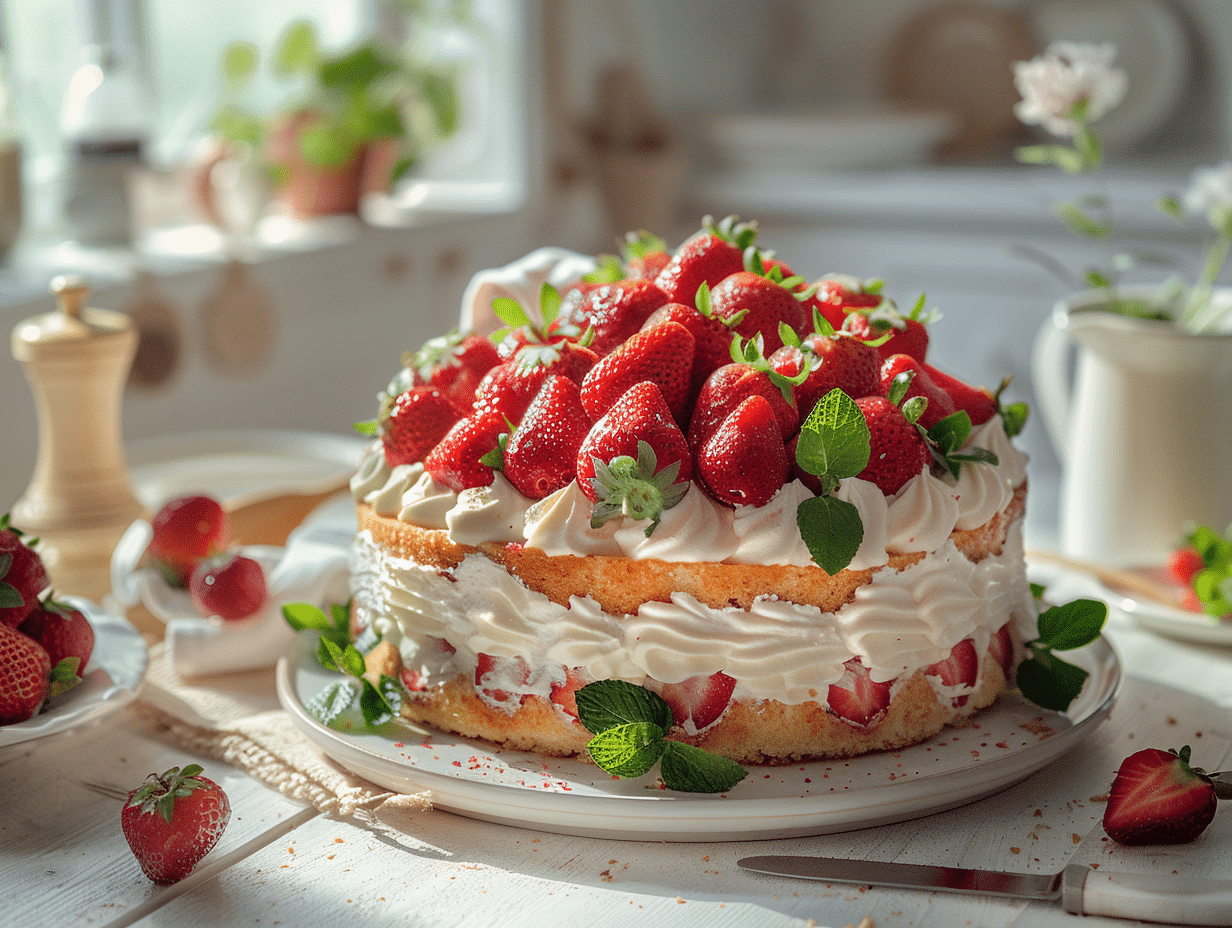 Sublimez le dessert avec quelques fraises fraîches disposées avec art sur le sommet et autour de la base. Un zeste de citron vert finement râpé ajoutera une touche de couleur et de fraîcheur qui ravira les amateurs de détails raffinés. N’hésitez pas à jouer avec les contrastes, en alternant fraises entières et tranches pour une présentation qui captive le regard.